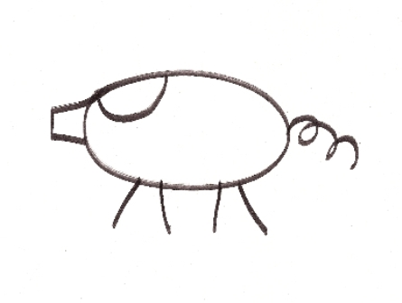 On utilise 2 dés. Chaque joueur dessine sur une feuille un cochon en procédant dans cet ordre :