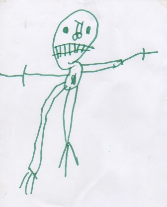 Hier, un gaminou de la family (initiale d’auteur = S) m’a offert un beau dessin de bonhomme patate. Et bing, voilà qu’une idée a surgi dans ma tête ! J’ai fait une photocop’ de l’oeuvre patatienne, j’ai farfouillé dans mes réserves et ai trouvé un bout de tissu uni. Une fois le boulot terminé, j’ai trouvé chez moi (oh miracle !) un bout de fil à broder de la bonne couleur et aussi une aiguille à gros trou… et j’ai fait une broderie toute simple ! Sûr que mon coussin de bonhomme patate va faire un beau cadeau de fête des mères à la môman de l’artiste !