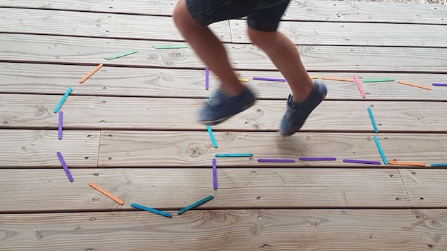 - Jeu « Mon petit œil le voit !!!! » avec un bâton tombé entre 2 lattes du plancher