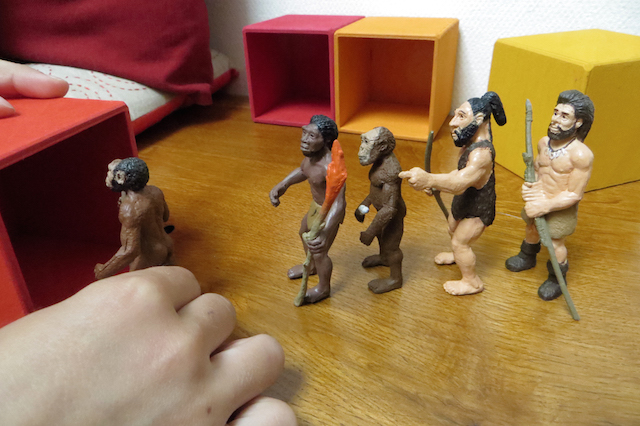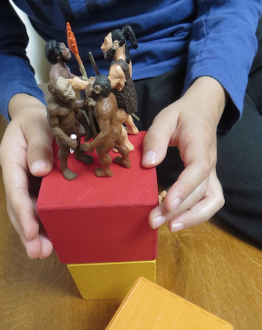 Et à l’époque (entre 3,8 et 2,9 millions d’années) est ce que les australopithèques y z’avaient des cartes Pokémon ? demande-t-il !!!!!!!  Alors, bien sûr, je me sers des figurines d’hommes préhistoriques pour lancer des jeux pour son grand frère et lui. On se téléporte dans l’histoire, on commence à discuter du sujet d’abord très sérieusement … et puis, ouf, ça dérape bien vite !