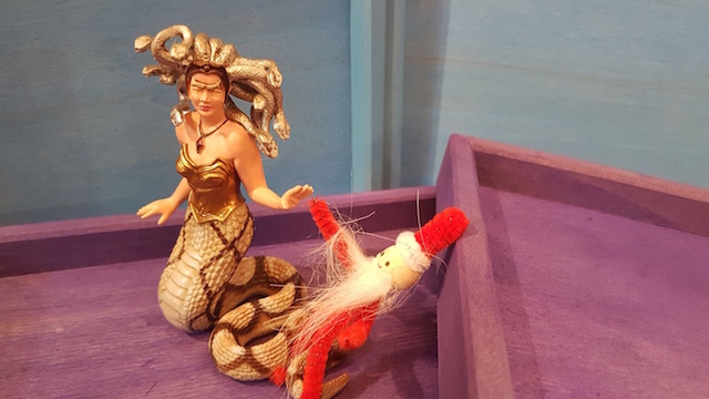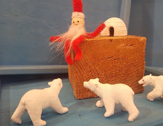 Comme eux j’aime faire vivre des aventures aux figurines du Si Tu Veux, surtout à cette période où le Père Noël a la vedette, où il se promène de partout sur les étagères !