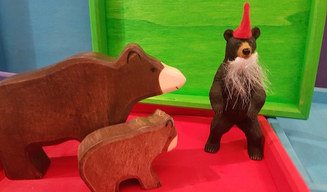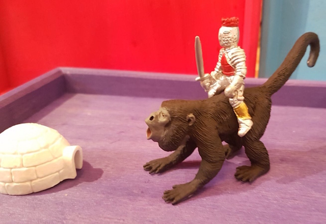 Je suis toujours épatée du naturel avec lequel les enfants que je vois dans le magasin entrent en quelques secondes dans leur monde intérieur dès qu’ils ont deux ou trois figurines en main … Celui où toutes les histoires sont possibles, celui où plus personne n’existe autour d’eux…