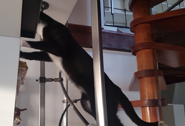 Mini-félin, qui n’est pas du genre à donner sa langue au chat, a cherché en faisant de bien plus jolies figures d’équilibriste que si cela avait été un enfanteau !