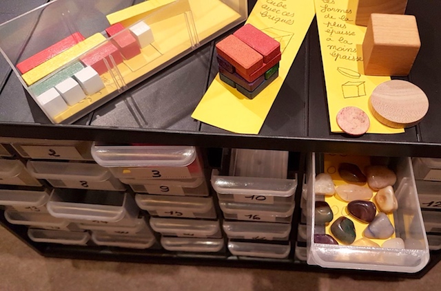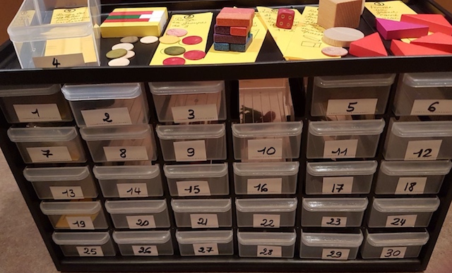 Oyez, oyez braves parents, bons enseignants, joyeux enfants … enfin voilà qu’on clame et acclame de partout ce qu’ici, sur ce blog, j’insuffle depuis toujours et encore d’encore : jouer, manipuler, bouger permet de mieux apprendre ! Pour rester dans l’ambiance-maths du moment je me décide à créer un “cabinet de mathématiques“ en regroupant dans les 30 casiers de ce meuble de bricolage tout ce qui peut servir à calculer, comparer, classer, diviser, multiplier et plus encore.