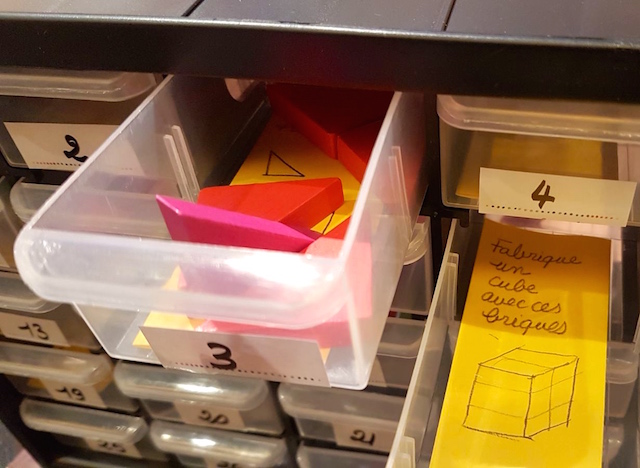 Oui, stopper l’activité avant que le matheux ne se lasse, c’est important. La joie de la découverte et la concentration maximum ne sont profitables que si l’on consomme avec modération. Pour en garder tout l’intérêt on veille aussi à laisser passer un certain temps avant de sortir à nouveau le cabinet mathématique, et on rajoute de temps en temps de nouveaux contenus dans les tiroirs.