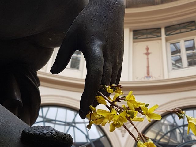 Passer chez la voisine de la galerie Vivienne, la galerie Colbert, pour offrir à l’Eurydice qui s’y trouve cette branchette de printemps