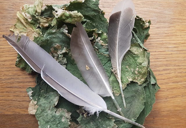 Des plumes qui serviront à booster l’acuité tactile et visuelle de mes familiens dès qu’un petit moment se prêtera à ces jeux, et que voilà :