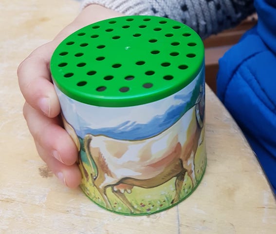 Le “cri de vache“ est un incontournable du Si Tu Veux. Il donne de la joie à tous ceux qui s’en emparent… Jouet mécanique, son beau son grave est produit par un soufflet qui se remplit d’air quand on renverse la boîte (on entend comme un soupir). Et hop, quand on la remet à l’endroit, l’air passe par une lame vibrante/ et le meuglement meugle !!!!