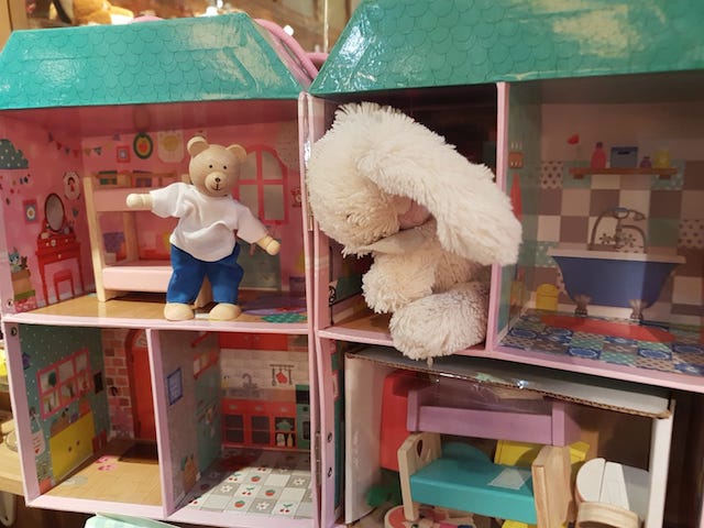 « Mais c’est pas possible, il a un grain ce lapin !!!! » constate le teddy bear!