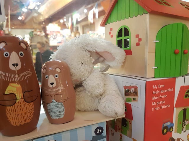 La panique gagne les jouets du Si Tu Veux, ils me somment d’éloigner d’eux le boloss-rabbit. Mais lui, il s’en fout de tout ça !« Aujourd’hui c’est moi la star, gnaf, gnaf, gnaf, je vais me faire au moins 133225 vues sur Insta et Facedelapinou » qu’il chantonne, en appelant tous ses potes pour leur demander de liker son passage sur la toile!