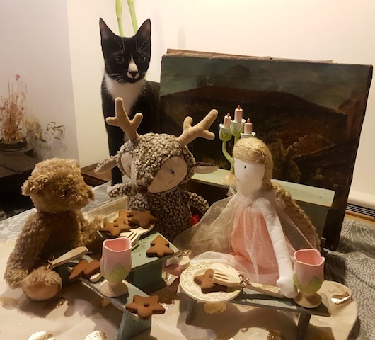 Que de choses à faire avec une simple dinette en bois, quelques animaux en peluche et une poupée en chiffon! Et si à votre tour vous lanciez l’idée de ce “goûter de Noël“ de par chez vous ?