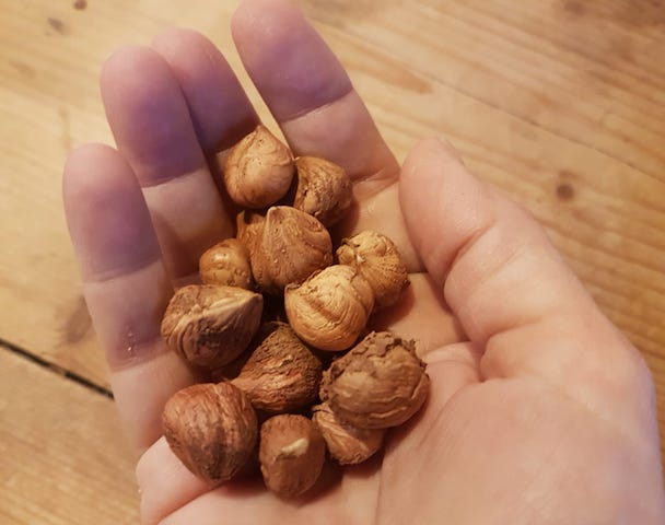 Inapte à les décoquiller (c’est trop dur !!!!) un lutin de maison s’est heureusement chargé d’éclater les fruits rondelets.
