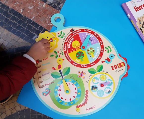 et le “Calendrier au fil du temps“, votre titi aura en main tout ce qu’il lui faut pour se repérer dans la journée, la semaine, les mois, les saisons …