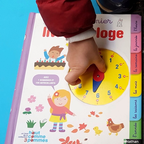 Se repérer dans le temps… prend toujours du temps lorsque l’on est enfant. Avec ce matériel là : “Mon premier livre horloge“