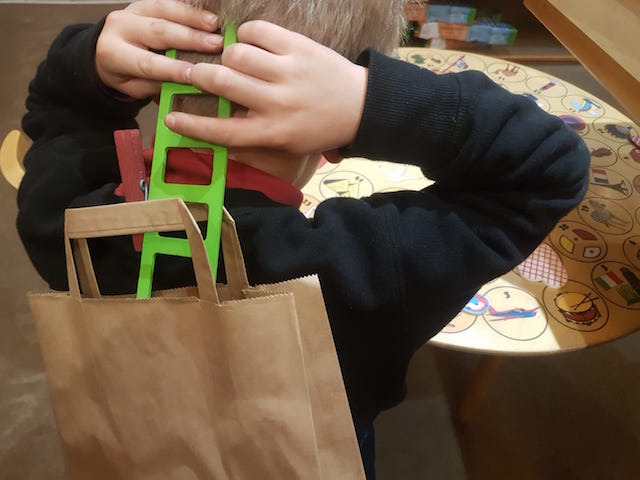 Alors elle vous file ce jeu de mémoire à 0 euro, testé avec un familien passant son mercredi après-midi de par ici. Vous pourrez le refaire chez vous avec des sacs en papier, des pinces à linge et les petits jouets qui trainent dans la chambre…
