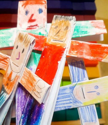 Puis je découvre que ces poupées de papier, une fois fabriquées, servent à animer des scénarios de jeu pour attirer l’attention des enfants sur le “savoir-vivre“.