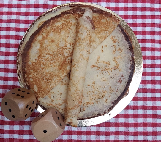 Crêpe dé, en pariant sur un nombre entre 1 et 12 avant de lancer les dés. Si les points affichés sur les dés sont les mêmes que ceux annoncés par le joueur avant son lancer, il a le droit de manger une crêpe !