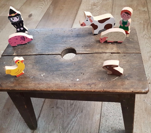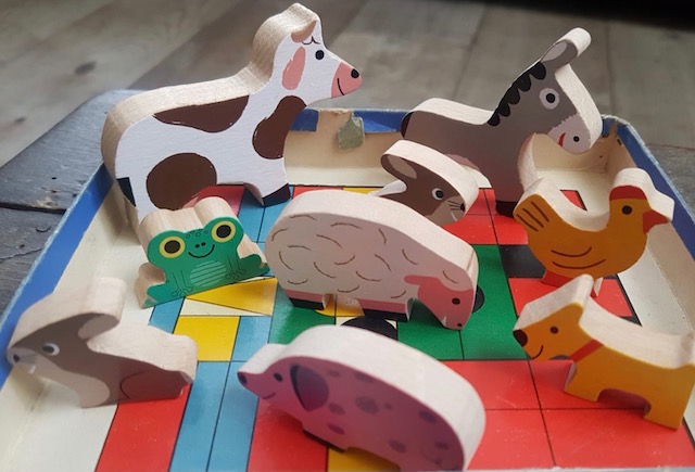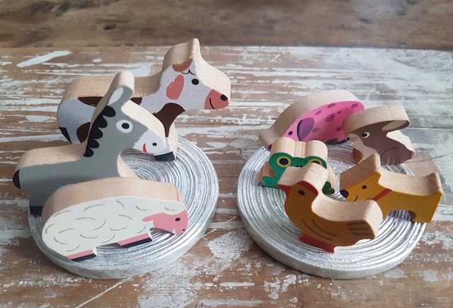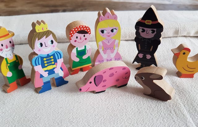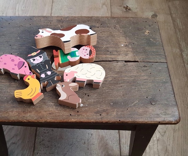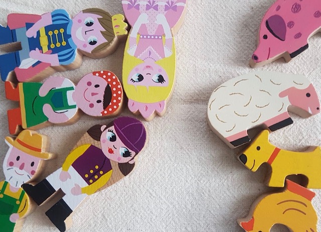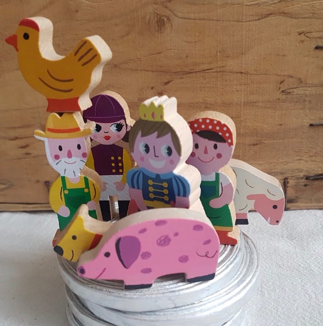 Dans le Si Tu Veux les petites figurines en bois Janod se baladent de partout: pompiers, animaux de la ferme, cavaliers, cyclistes, chevaliers, dragons, sorcières…