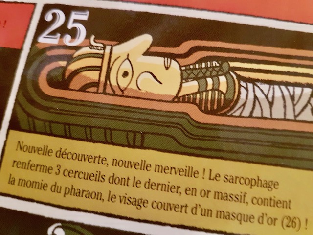 Psst! Voilà les cases à franchir pour aller d’un bout à l’autre de l’aventure (1-5-21-9-12- 8-14- 25-26)… afin que le joueur ne pense pas que la malédiction des pharaons soit tombée sur lui !