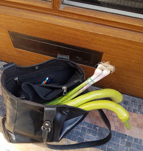 Rien ne peut me faire rater l’arrivée des courgettes de Nice et des doux aillets. Et me voilà, avant d’aller bosser, filant en remplir mon sac chez mon marchand de légumes …