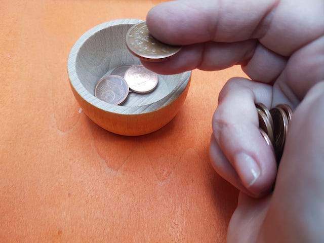 Là il s’agit de glisser une pièce dans la fente avec tout un tas d’autres centimes d’euros coincés dans la main.