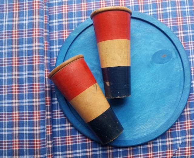 Bien sûr que ces magnifiques gobelets à dés en bois, que mon œil de lynx a repéré dans un vide-grenier, il fallait qu’ils fassent leur apparition pour le 14 juillet !