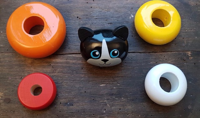 - Mélanger toutes les pièces rondes et trouées des jouets de votre titi
