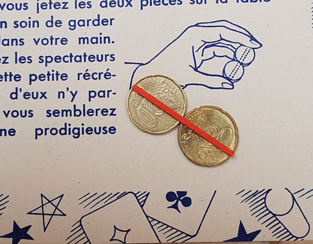Et voilà que cela me donne envie de faire, moi z’aussi, la prestidigitatrice ! Aaaadmirez ! Je peux maintenir 2 pièces de 20 centimes en contact par leur tranche entre mon pouce et mon index !
