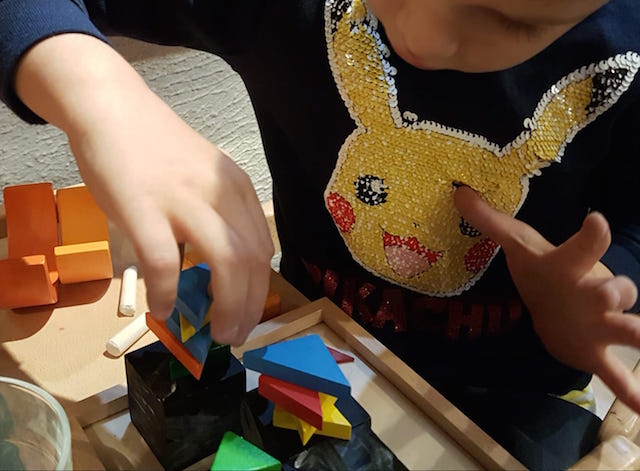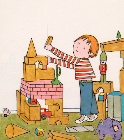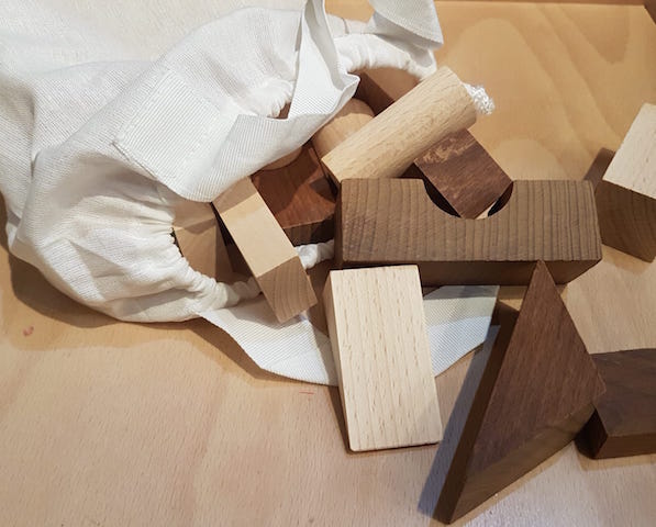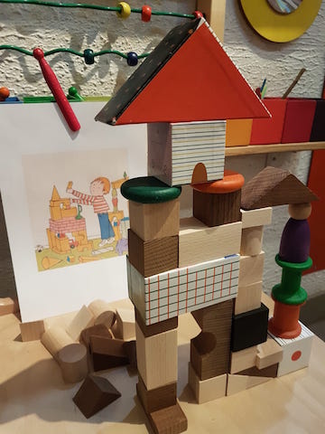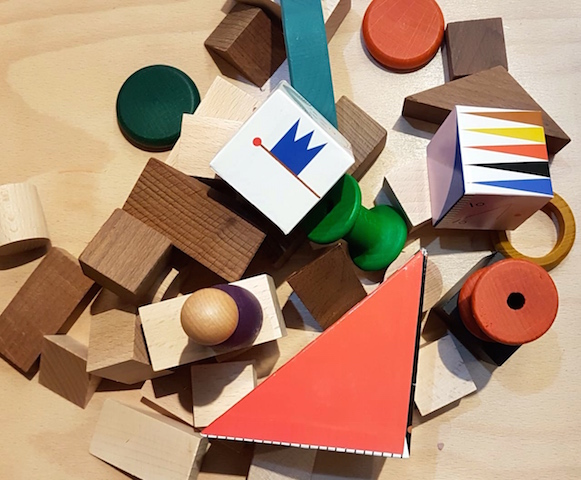 …inviter les formes du livre-jeu “Archi-Blocs“ et quelques loose parts traînant par là, pour de la construction combinée.