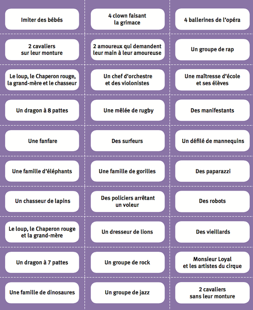 Le meneur de jeu répartit les genss de la family par groupes de 4 et leur remet une carte-mime.