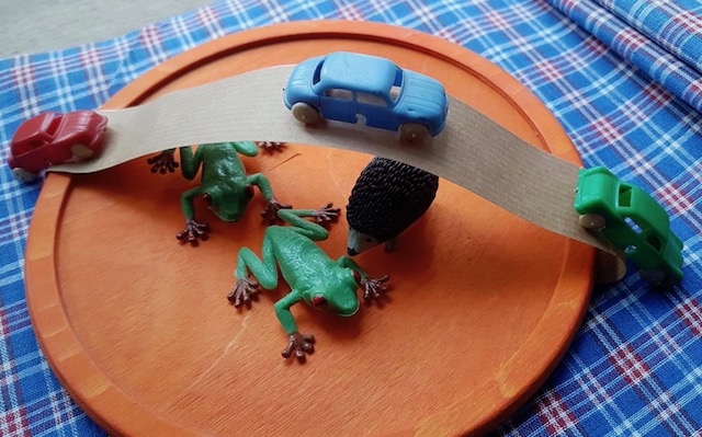 - On peut construire un tunnel en carton pour laisser passer grenouilles et hérissons sans qu’elles risquent une fin fatale en traversant une route.