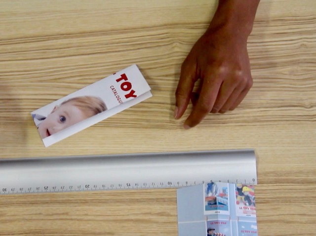 D’abord on montre à nos jeunes potes comment, avec du papier « tout récup’ », (couverture de magazine = tip top ) on peut fabriquer des cubes .Juste avec 12 bandes de papier de 10 cm de large (à plier en deux) et de la longueur que vous souhaitez (ici 15 cm de long)