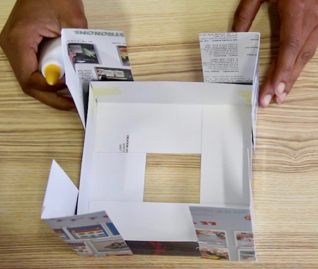 3. Former le « chapeau du cube comme en (1) et coller les angles