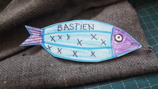 Dès qu’ils entendront leur parent le prononcer, quand ils l’appellent ou parlent de lui dans une conversation, ils feront une croix sur leur poisson. Quand il y en a plus de 10 le poisson sera accroché dans le dos du parent .