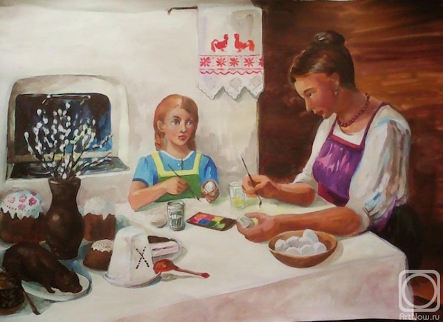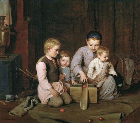 C’est en partant en quête d’amusement pour Pâques que j’ai trouvé cette belle image russe qui m’a inspiré le jeu de la pente des œufs.