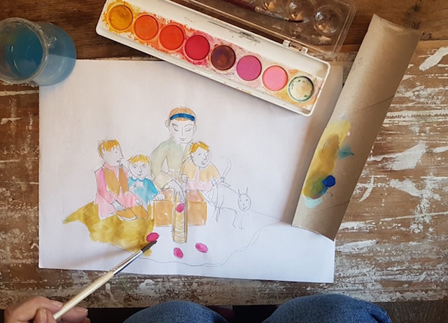 Faites tout pareil de par chez vous ! Commencez dès aujourd’hui un concours de dessin… surtout si vous ne savez pas ou plus dessiner ou tenir un pinceau. Vos enfanteaux seront si heureux de vous voir à l’œuvre ! S’ensuivra le jeu de la pente, après la chasse aux œufs en appartement de ce dimanche.