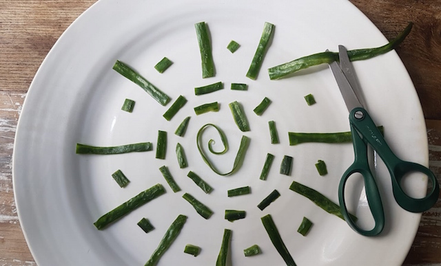 Puis mettez-lui dans les mains ces « réglettes vertes » à fraîche texture qu’il posera dans une assiette.