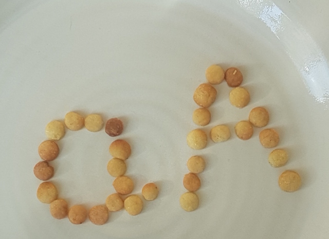 Puis ce sera au tour de votre gus d’“écrire“ avec les mini gâteaux en les collant sur les lettres…