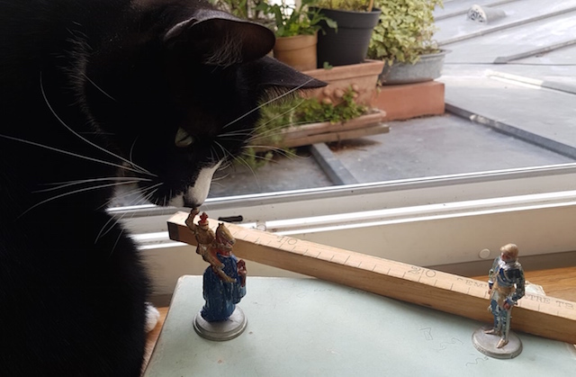 … et sans m’étonner, pour ma part, de voir le félin surveiller la bonne distanciation de ma petite classe de figurines !