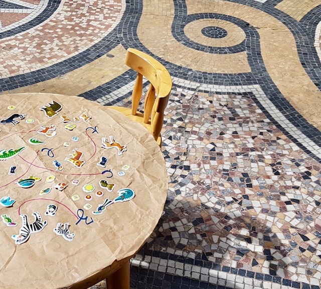 On joue à les coller bien sûr, mais on s’en sert aussi pour une activité inspirée du fameux « Mon petit œil a vu » de Maria Montessori.
