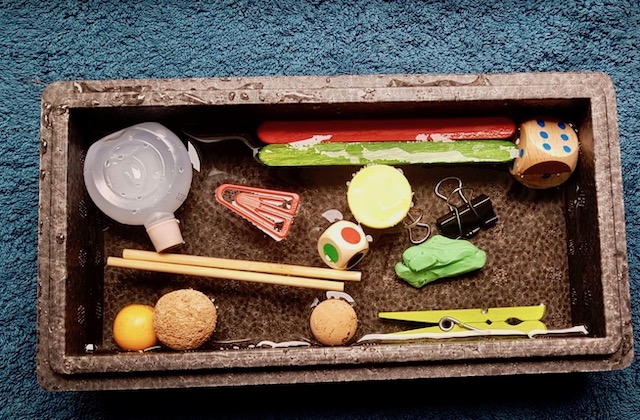 Alors, zou, on réunit devant son titi un « vrac » de mini jouets ou “loose parts“.