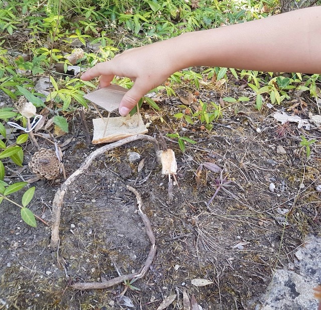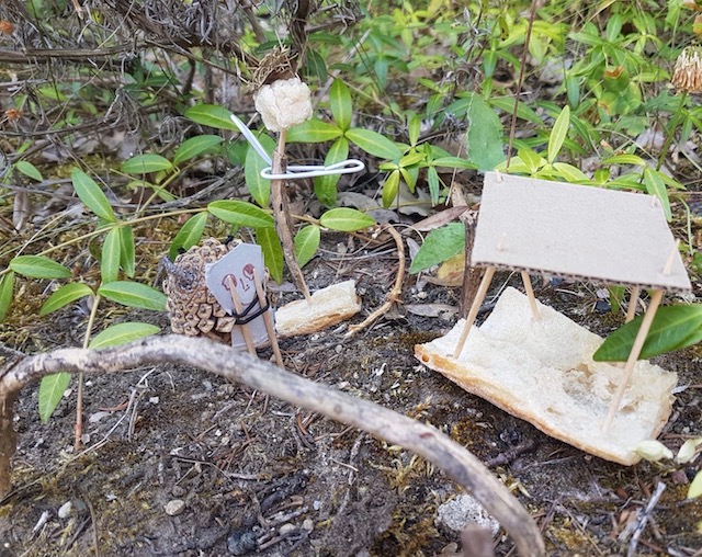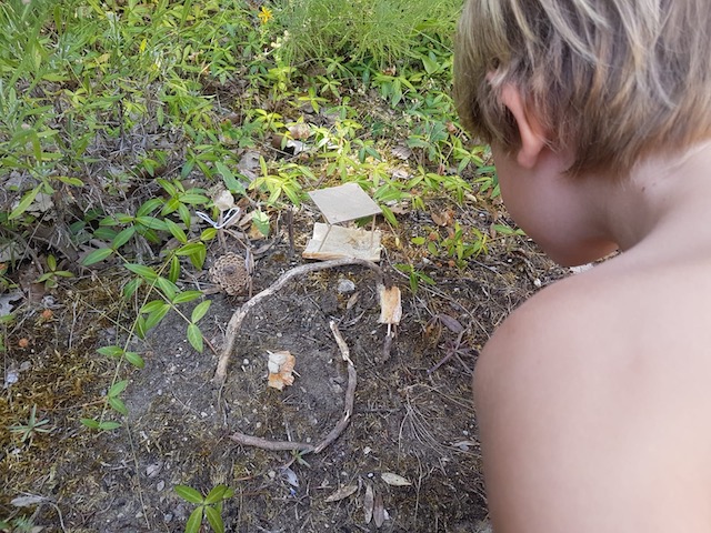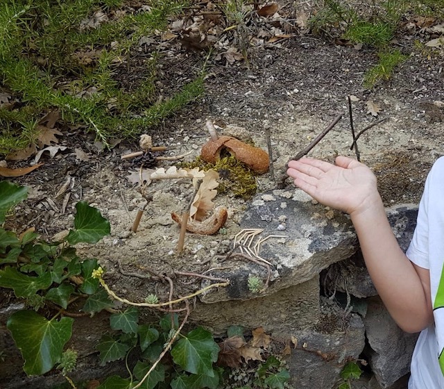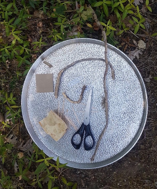 Poser des loose parts, matériel de récupération ou éléments glanés dans la nature sur un plateau.