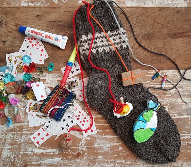 Figurez-vous que chez Si Tu Veux on a retrouvé le typoss qui tricote toujours de même façon les authentiques chaussettes de Noël. Moi, j’ai été chargée de les remplir de plein de zigouigouis !