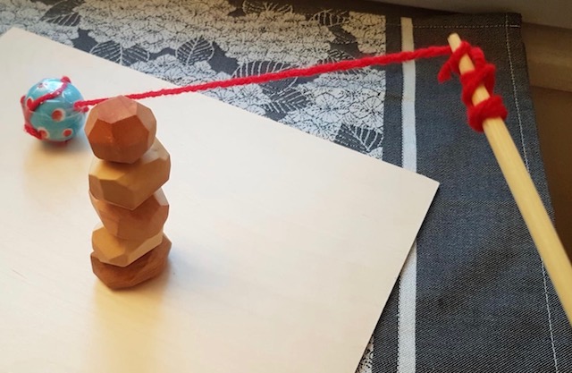 Pyramide à dégommer : Pour jouer on empile les blocs de bois du Si Tu Veux (ou tout autre chose que vous avez chez vous) Un joueur prend une baguette à laquelle est attaché un calot ou un caillou. En le faisant balancer il doit essayer de faire tomber les blocs l’un après l’autre (pour chaque bloc tombé, il marque 1 point). Le joueur qui renverse plusieurs blocs d’un coup cède son tour. Celui qui obtient 10 points est le gagnant.
