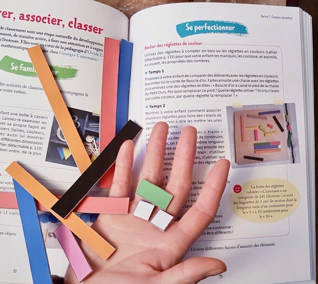 Le concept des “réglettes à compter“ interroge souvent les parenteaux. J’explique dans le livre « Mes tout premiers apprentissages avec les pédagogies alternatives » comment bien les utiliser avec son enfant. Et quand une Madame-la-Maman, passant dernièrement dans la shop, me dit : « Avec les jeux de votre livre mon enfant a su compter en un rien de temps »… ça fait plaisir !