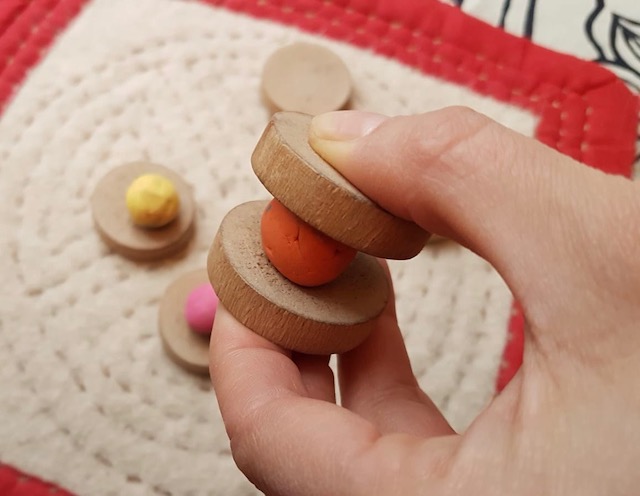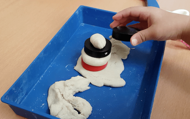 Ah comme c’est bon de voir les petits de la crèche tout à côté du Si Tu veux, apprécier l’une de mes simplissimes activités de découverte z’avec pâte à modeler : l’empreinte d’un cube, d’un pion rond, là avec de la pâte à sel.