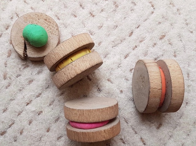 Des pions fourrés à la pâte à modeler, genre “macaron de chez Hermé“.