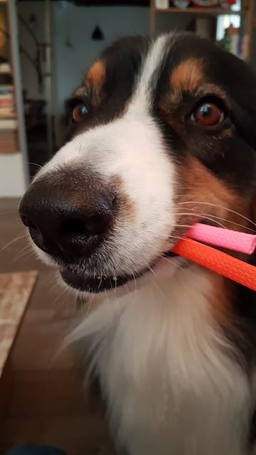 puis on lâche, et le “Mr Tubino“ trace sa route. Les essais se multiplient, jusqu’à ce que le canin de maison en ait marre d’aller ramasser les tubinos …