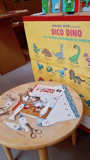 Et vla ti pas que je peux moi aussi faire des tas de poissons. Je les découpe dans les affichettes bonus que le-lolo de l’École des Loisirs me glisse dans les cartons de livres que je reçois.