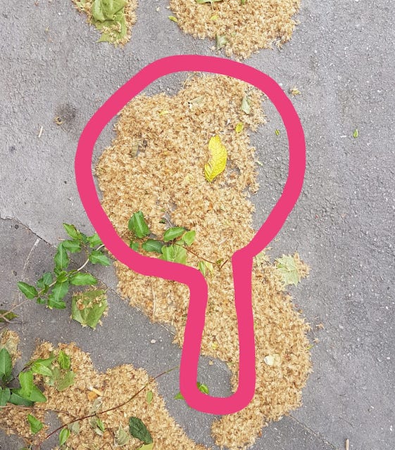 Puis on passe à la séance d’observation avec ce que j’ai glané durant mon trajet maison/ travail : du « mimi » de platane et des « déchets » en train d’être balayés par la fleuriste du coin.